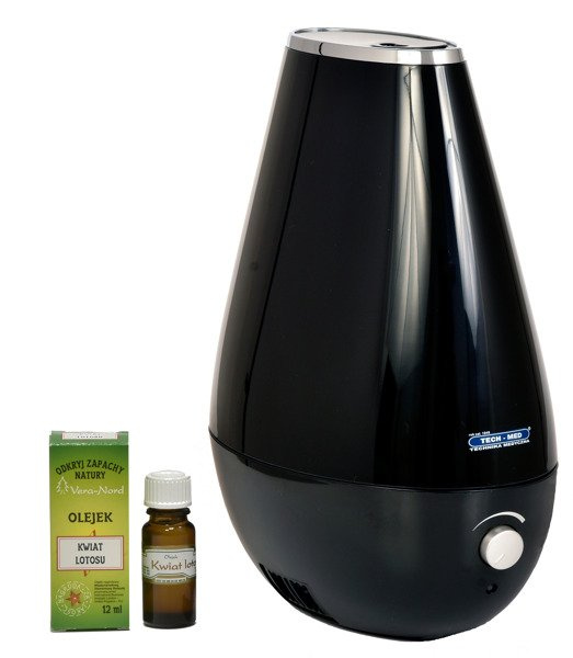 Ultradźwiękowy nawilżacz powietrza z jonizatorem TM LOTOS (czarny) + olejek zapachowy