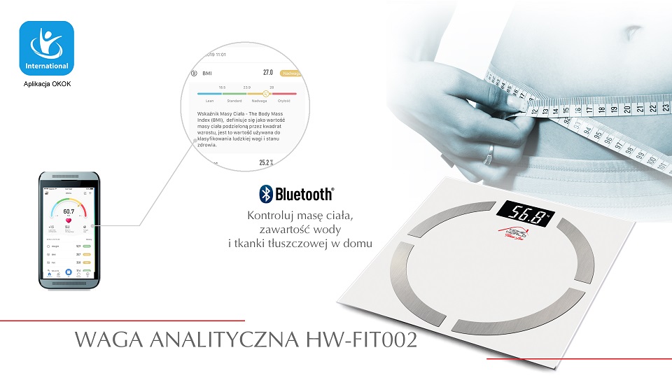Staranne wykończenie szklanej platformy oraz Slim Line Design sprawią, że waga HW-FIT002 będzie ozdobą Twojej eleganckiej łazienki.