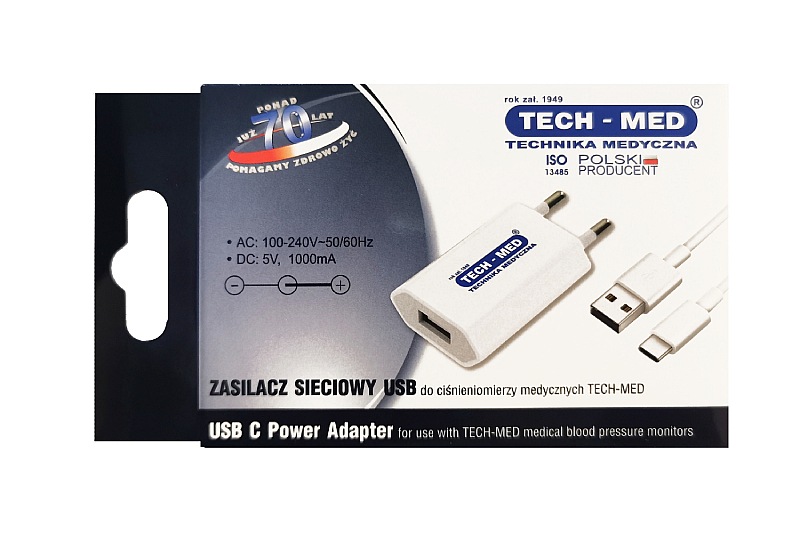 Original USB-C power adapter for TECH-MED blood pressure monitor models: TMA-10 (only from the year 2023 version)