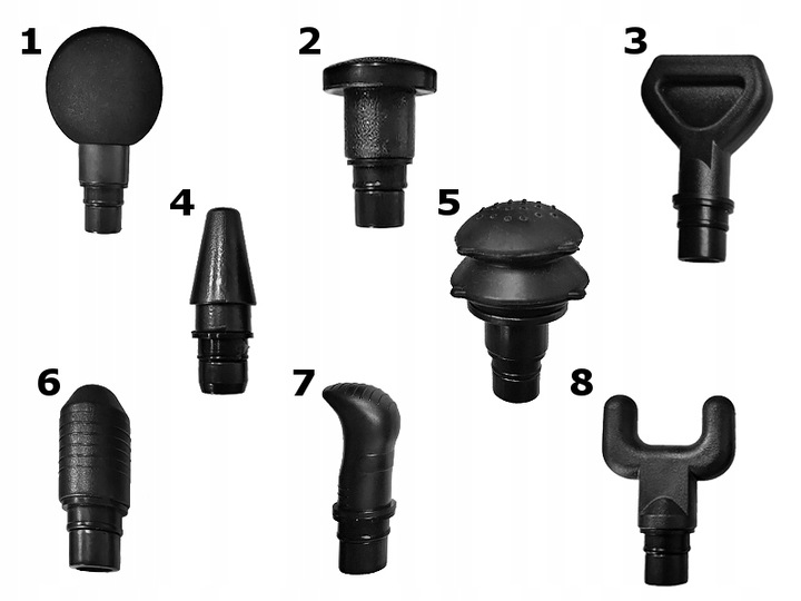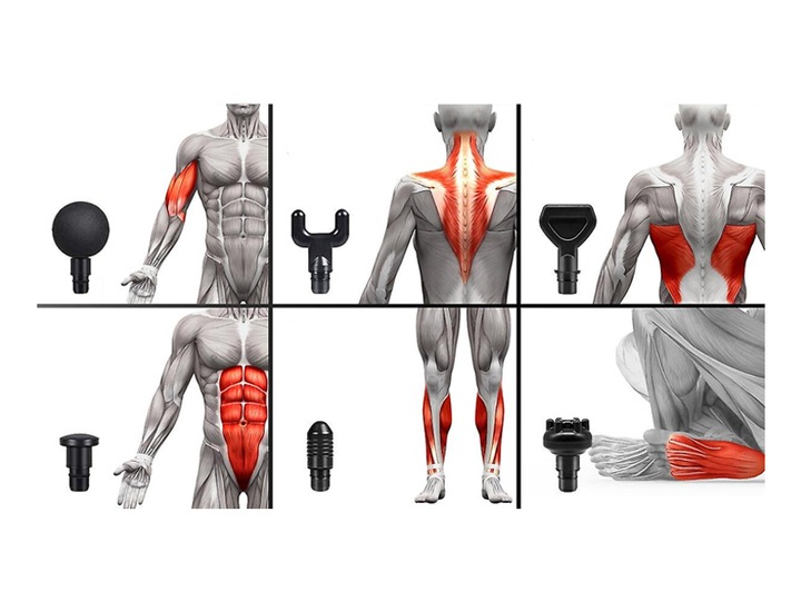 Komplet 8 głowic masujących dołączonych do zestawu, w pełni pobudzi nasze mięśnie. Po ciężkim dniu rozmasujesz obolałe i spięte okolice karku czy łydki po intensywnym treningu lub skurczu.