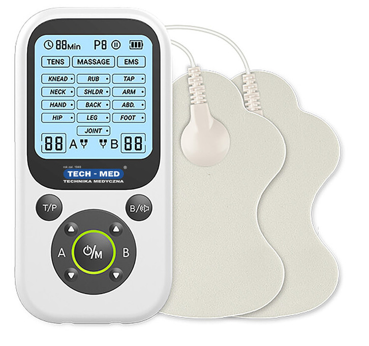 Urządzenie TM-TENS 3 TECH-MED to dwukanałowy przenośny profesjonalny elektrostymulator z funkcjami TENS, EMS i MASAŻ.